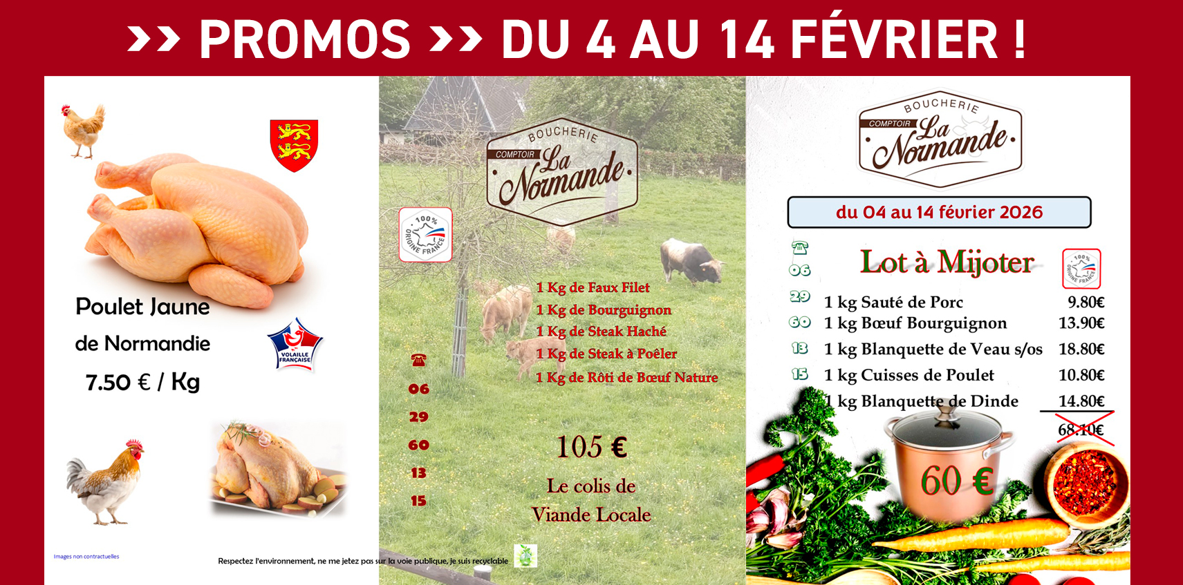 BDC CLN Une viande de race, tendre et savoureuse. Vos valeurs Bienvenue chez Comptoir la Normande boucherie en ligne Du mardi au vendredi de 09h00-12h30 et de 14h30-18h00. Le samedi de 09h00-13h00. Commander par mail à boutique.comptoirlanormande@gmail.com ou par téléphone au 06 29 60 13 15
